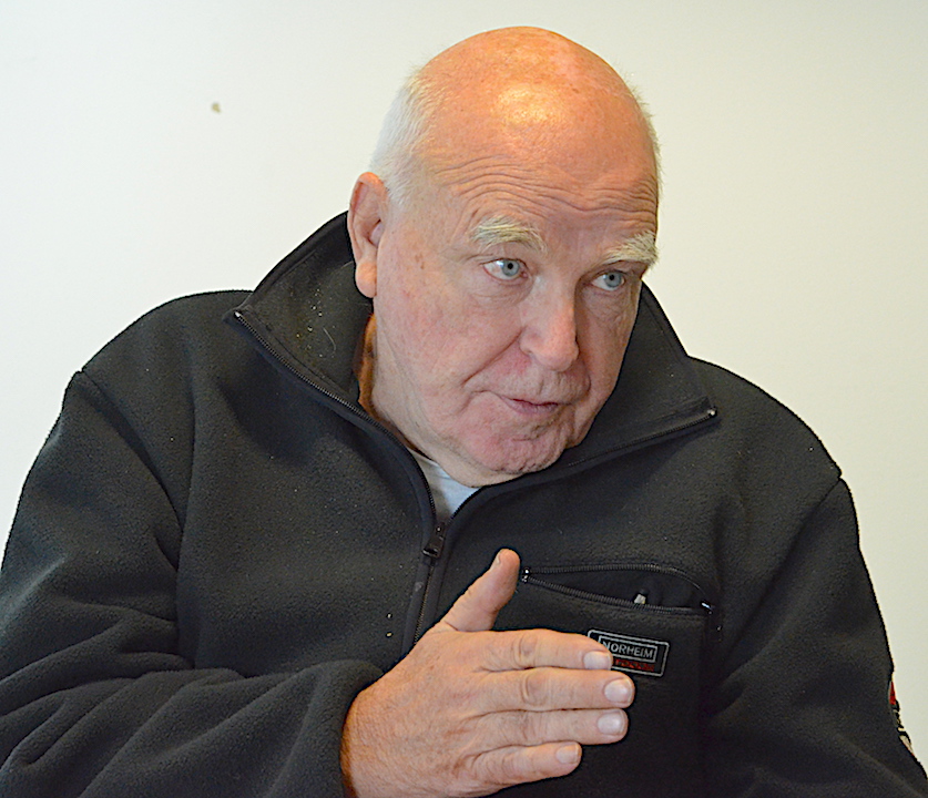 Alf Laugsand foran Stovnertårnet. [Foto Nils Martin Aslaksen]
